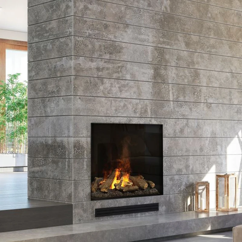 Faber’s e-Matrix Built-In Electric Firebox offers astonishing fire from water. When a gas fire or wood stove is impossible or undesirable, or for those who prefer individual design and specific choices, opt for the Single-Sided e-Matrix. While the e-Matrix operates, it creates water vapor from the water tanks below. In combination with LED lighting, the water vapor cerates a fire and smoke illusion so believable, your guests won’t believe it’s not fire.