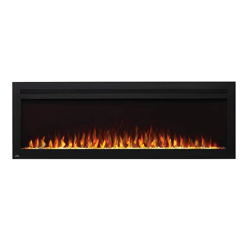Napoleon’s sleek design features the option of a white LED flame, orange LED flame or combination of both with a Clear Crystal Ember Bed Accent. Napoleon’s Purview Linear Fireplaces can be fully recessed into the wall for a flush appearance or easily hung on the wall with built-in wall mounting bracket. Upgrade your space with Napoleon’s modern, functional and dazzling 60-in Purview Linear Electric Fireplace.