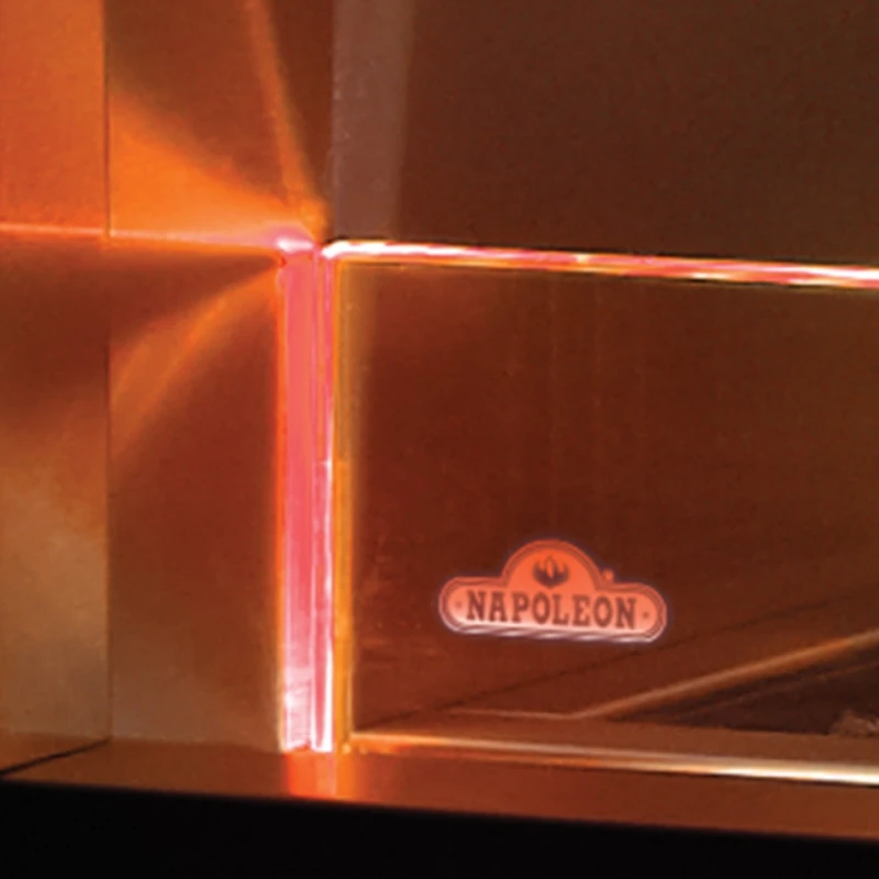Napoleon’s sophisticated burner system offers superior flame technology. Strategically placed burner ports create the most realistic flames in the industry. Enhance the flame with AMBIENT-GLOW metal fibers