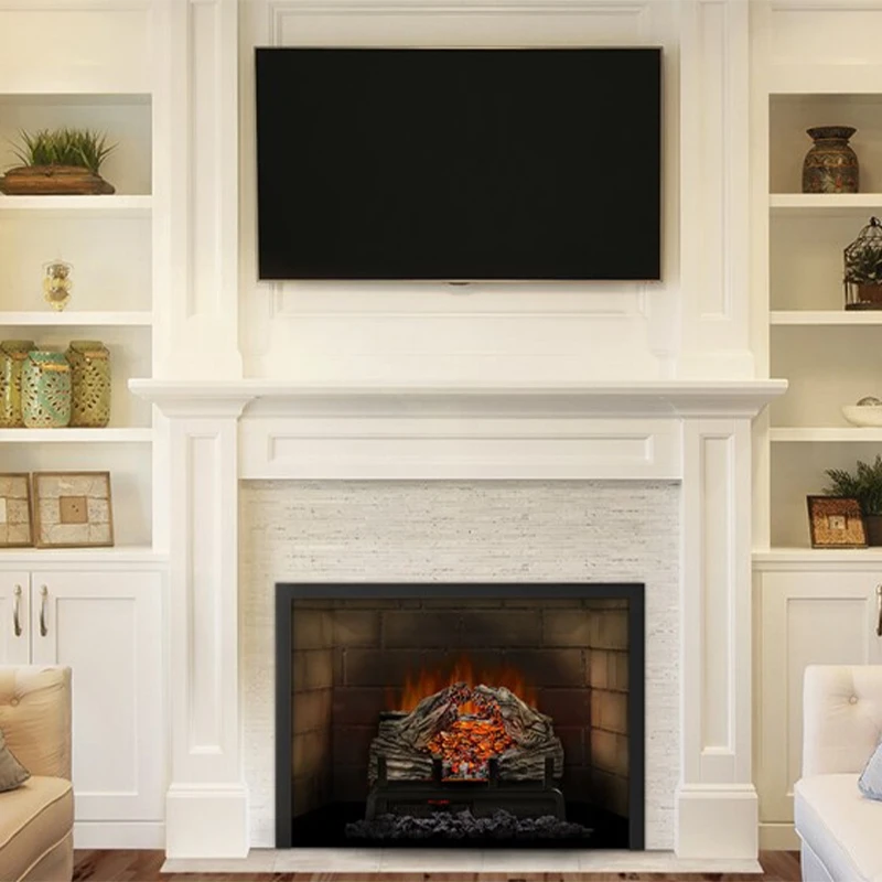 Completely transform a room with this eco-friendly heating solution. The Woodland Electric Log Set is a plug and play electric fireplace that fills an old, pre-existing masonry fireplace opening. High intensity, low energy, LED lights dance like real flames and are visible day or night, while the logs glow just like a real wood fire. This set comes with an included remote allowing you master control over flame height, intensity and heat output. Safe for family, children and pets, this log set never gets hot enough to burn. The Woodland Electric Log Set Series is ready to go right out of the box, or it can be hardwired into an existing electrical system.