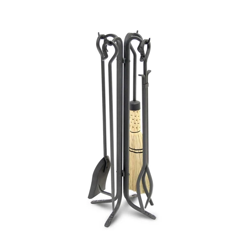 The Pilgrim Forged Hearth Tool Set with Corn Broom has been a Pilgrim bestseller for decades. This timeless set stands 28 inches tall and is hand-forged from quality solid iron bar stock with a black finish. Tools included are a poker, tongs, shovel and braided corn broom. Pilgrim’s original designs are hand-forged and backed by a Lifetime Guarantee.