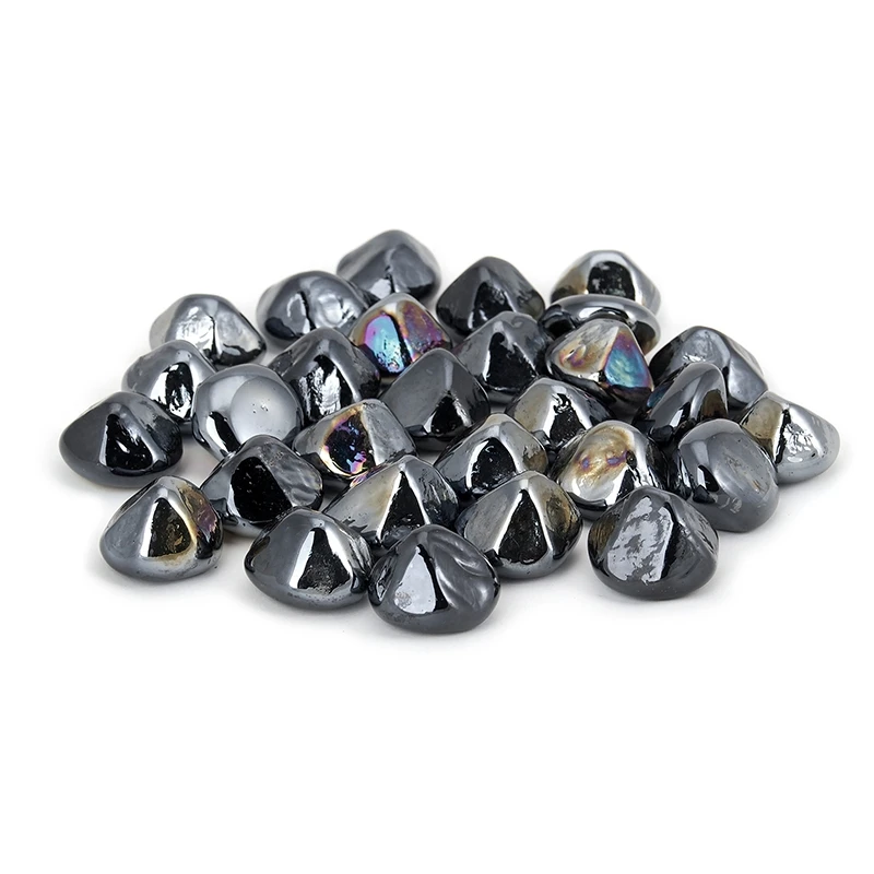 Real Fyre Black Luster Diamond Nuggets provides a premium contemporary fire media alternative to enhance your fire. Manufactured from high quality tempered, tumbled glass, the elegant Black Luster Diamond Nuggets offer a modern accent that will bring more contrast and flame reflectivity to your fireplace or fire pit.