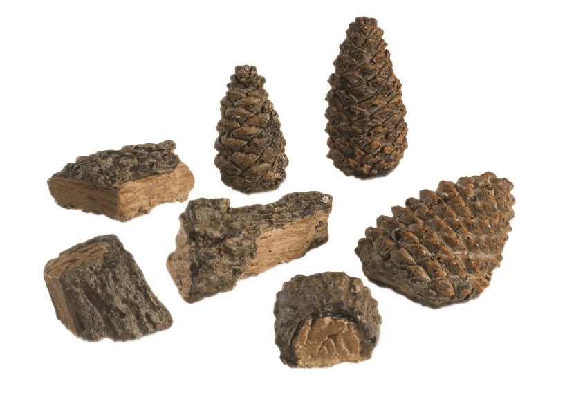Decorative set of four wood chips and three pine cones. Add to your fire to give a unique look and feel that is your very own. For use with additional media sold seperately. Can be used with other decorative accessories.