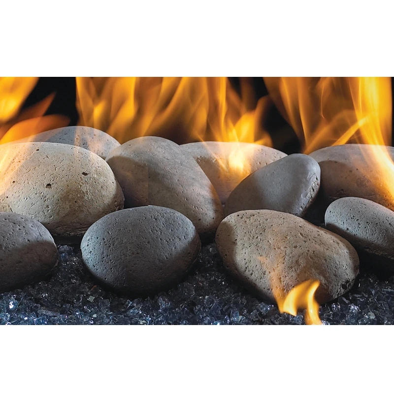 Wonderful display of flames and media in the new P45 Dual Pan Burner System which creates a dynamic flame pattern dancing through glass or lava and envelopes any shapes added to the fire pan. Combined with your options of River Rock. Choose Between Assorted, Ivory, Slate & Terracotta.