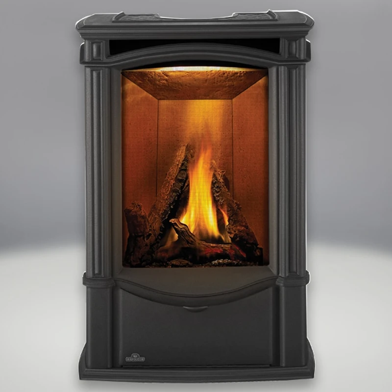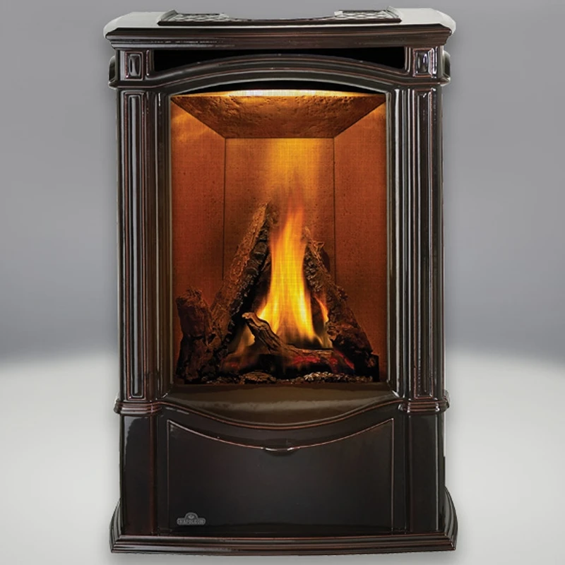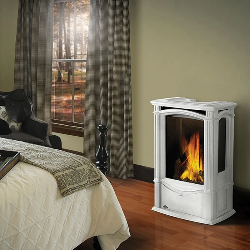 Traditional, Elegant, and Functional. The Castlemore Gas Stove offers timeless sophistication with a sleek European design that is sure to capture attention in any room. This stove may be compact, but it boasts 25,000 BTUs to make your room warm and cozy. Enjoy ageless elegance and functionality with a Napoleon Castlemore Gas Stove.